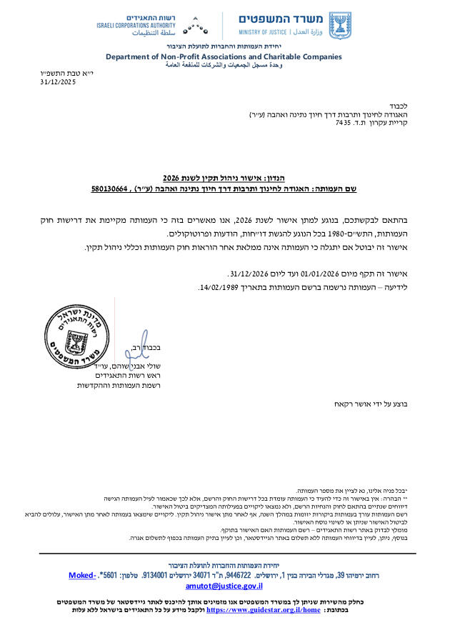 – הפעלת שירותי ניתוח ופרסום (Google Analytics, Google Ads)המשתמש יכול להשבית קובצי Cookie בהגדרות הדפדפן. עם זאת, ביטול קובצי Cookie עשוי לפגוע בתפקוד האתר.שיפויהמשתמש מתחייב לשפות את העמותה, עובדיה ונציגיה בגין כל נזק, הוצאה או עלות, לרבות הוצאות משפט ושכר טרחת עורכי דין, הנובעים מהפרת תנאי השימוש באתר.הגבלת אחריותהמשתמש פוטר את העמותה מאחריות בגין אי עמידה חלקית או בלתי מכוונת בכללי הגנת הפרטיות, למעט במקרים של הפרה מכוונת של חובת הסודיות.קישורים לאתרים חיצונייםהאתר עשוי לכלול קישורים לאתרי אינטרנט חיצוניים. העמותה אינה שולטת בתוכן אתרים אלו ואינה אחראית לעדכניותם, לאמינותם או לחוקיותם.שינויים באתרהעמותה רשאית לשנות בכל עת את מבנה האתר, עיצובו, תוכנו ותפקודו ללא הודעה מוקדמת.