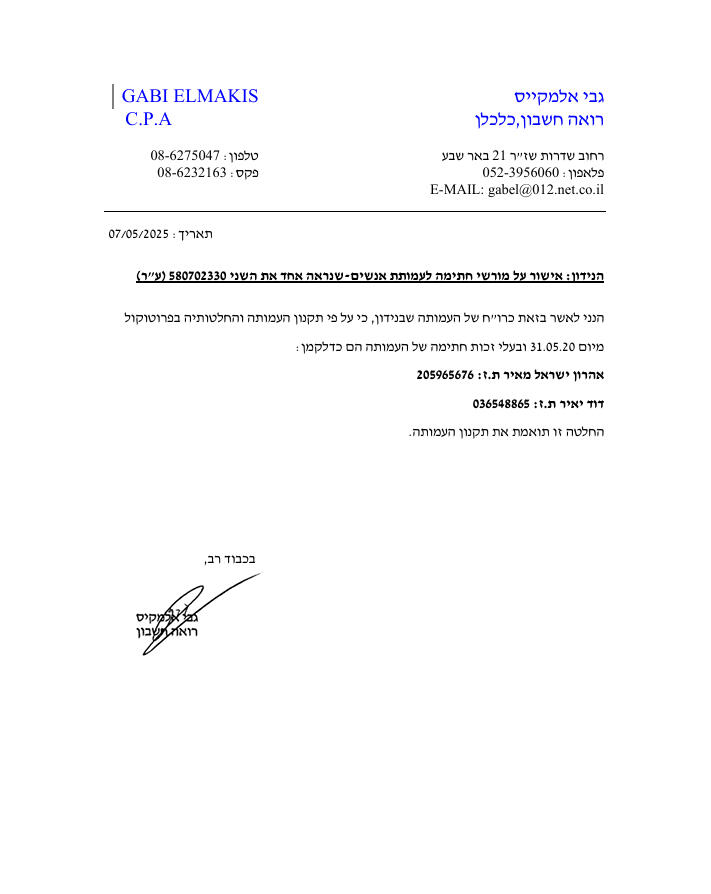 לצפייה במסמכים הרשמיים לחצו: